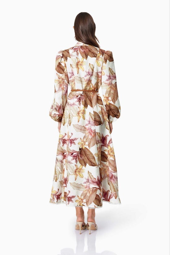 Introducing our Meadow Floral Day Dress in White, a charming blend of timeless elegance and modern sophistication. Designed for daytime wear, this midi long-sleeve dress exudes effortless style and grace.