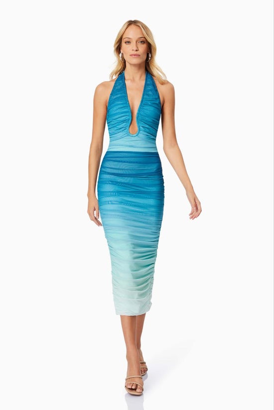 Brielle Halter Neck Midi Dress In Blue